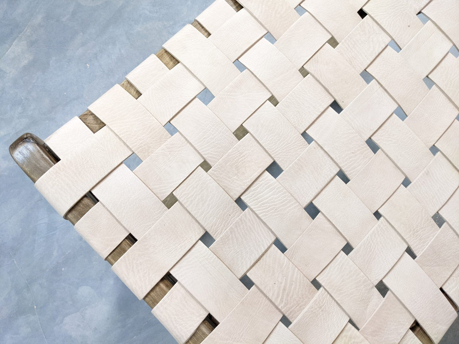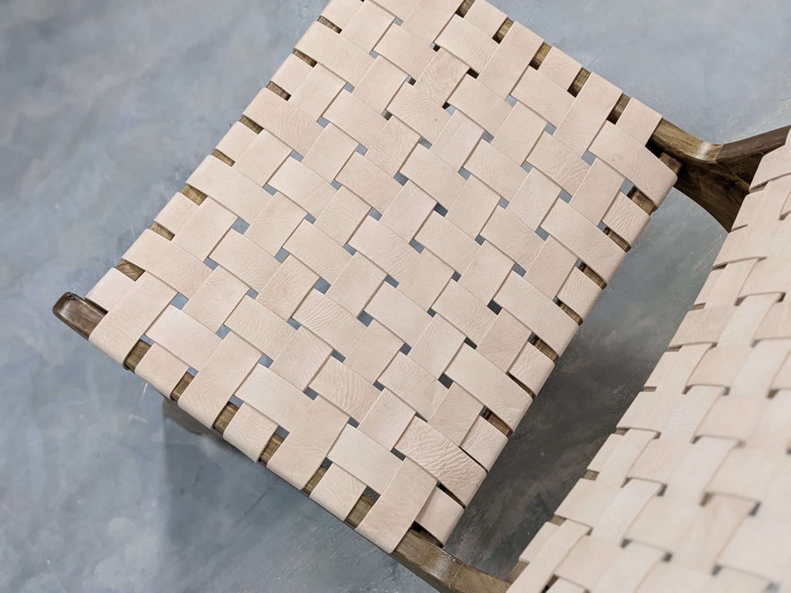 Le cuir utilisé provient directement par nos soins de Fès, la capitale du cuir. Sa qualité est tout à fait irréprochable et sa teinte subtile se marie parfaitement avec les couleurs chaudes et profondes du bois de noyer.