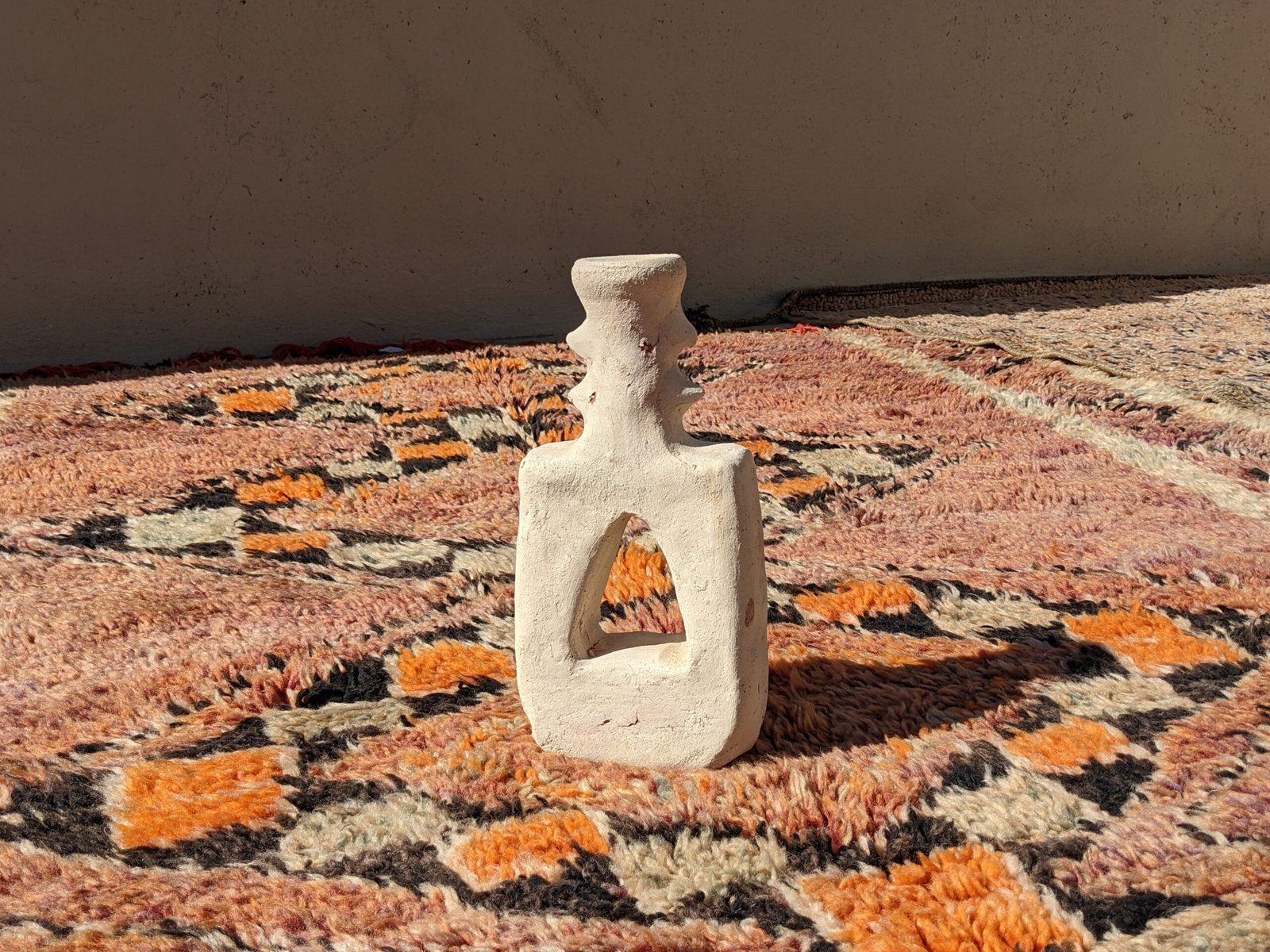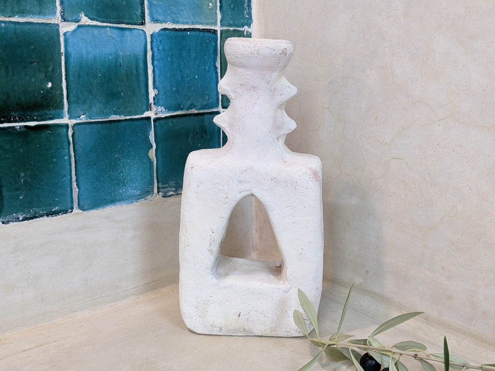 Adoptez la beauté brute et organique de notre porte-bougie en céramique, une véritable œuvre d’art façonnée à la main dans la pure tradition marocaine. Inspirée par les paysages désertiques et le savoir-faire ancestral, chaque pièce est réalisée directement dans une coopérative de la région, sans intermédiaires.