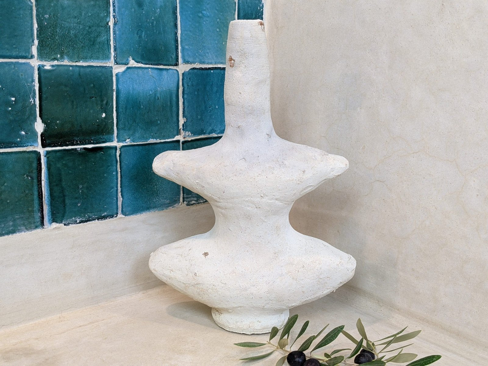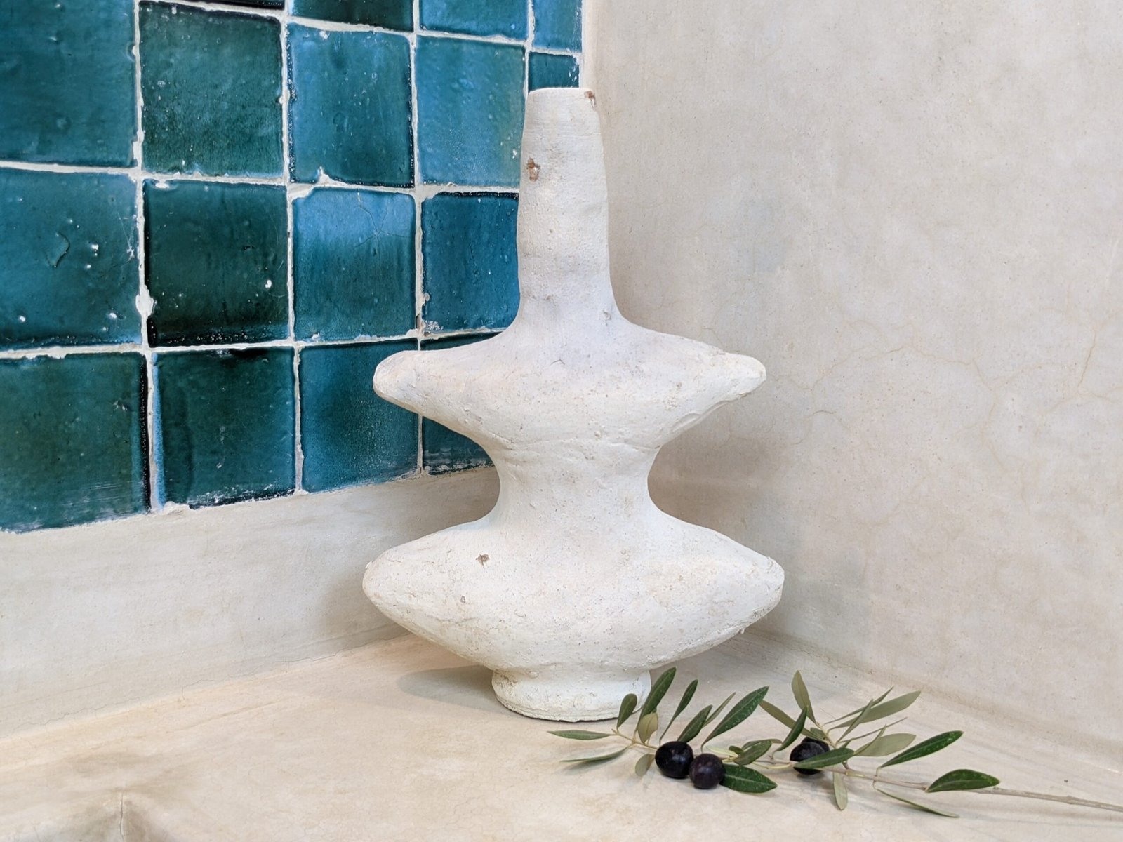 Adoptez la beauté brute et organique de notre porte-bougie en céramique, une véritable œuvre d’art façonnée à la main dans la pure tradition marocaine. Inspirée par les paysages désertiques et le savoir-faire ancestral, chaque pièce est réalisée directement dans une coopérative de la région, sans intermédiaires.