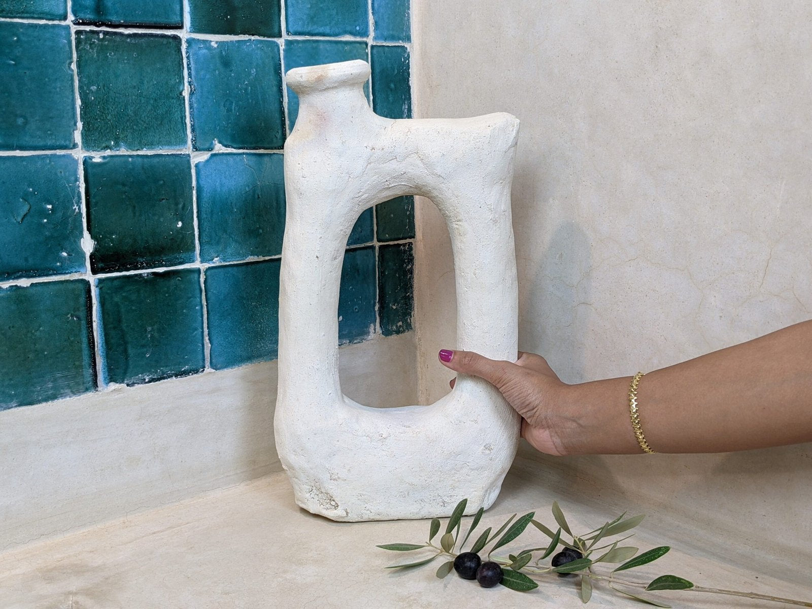 Adoptez la beauté brute et organique de notre porte-bougie en céramique, une véritable œuvre d’art façonnée à la main dans la pure tradition marocaine. Inspirée par les paysages désertiques et le savoir-faire ancestral, chaque pièce est réalisée directement dans une coopérative de la région, sans intermédiaires.