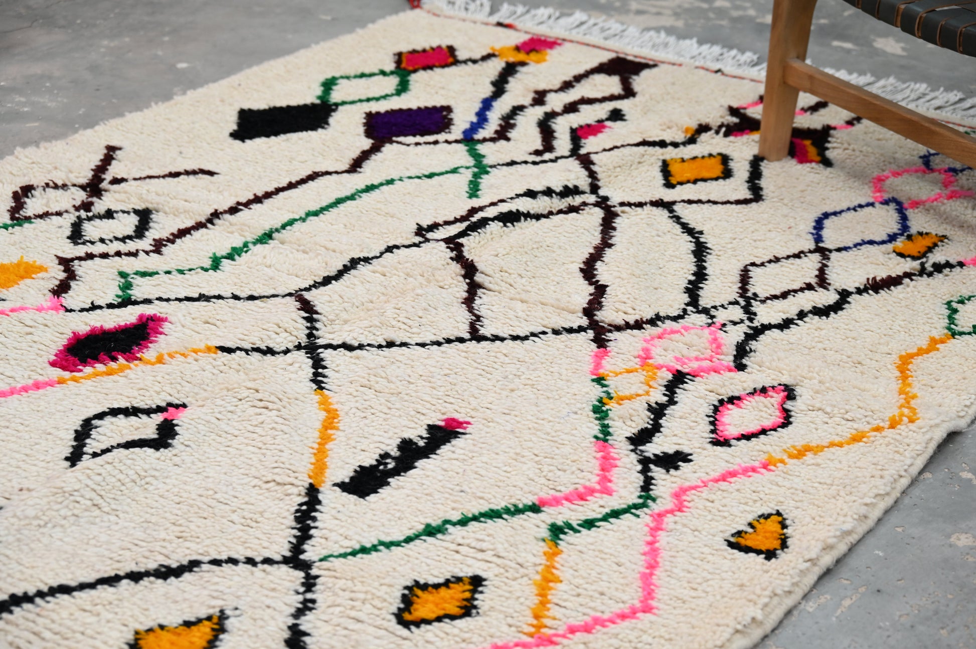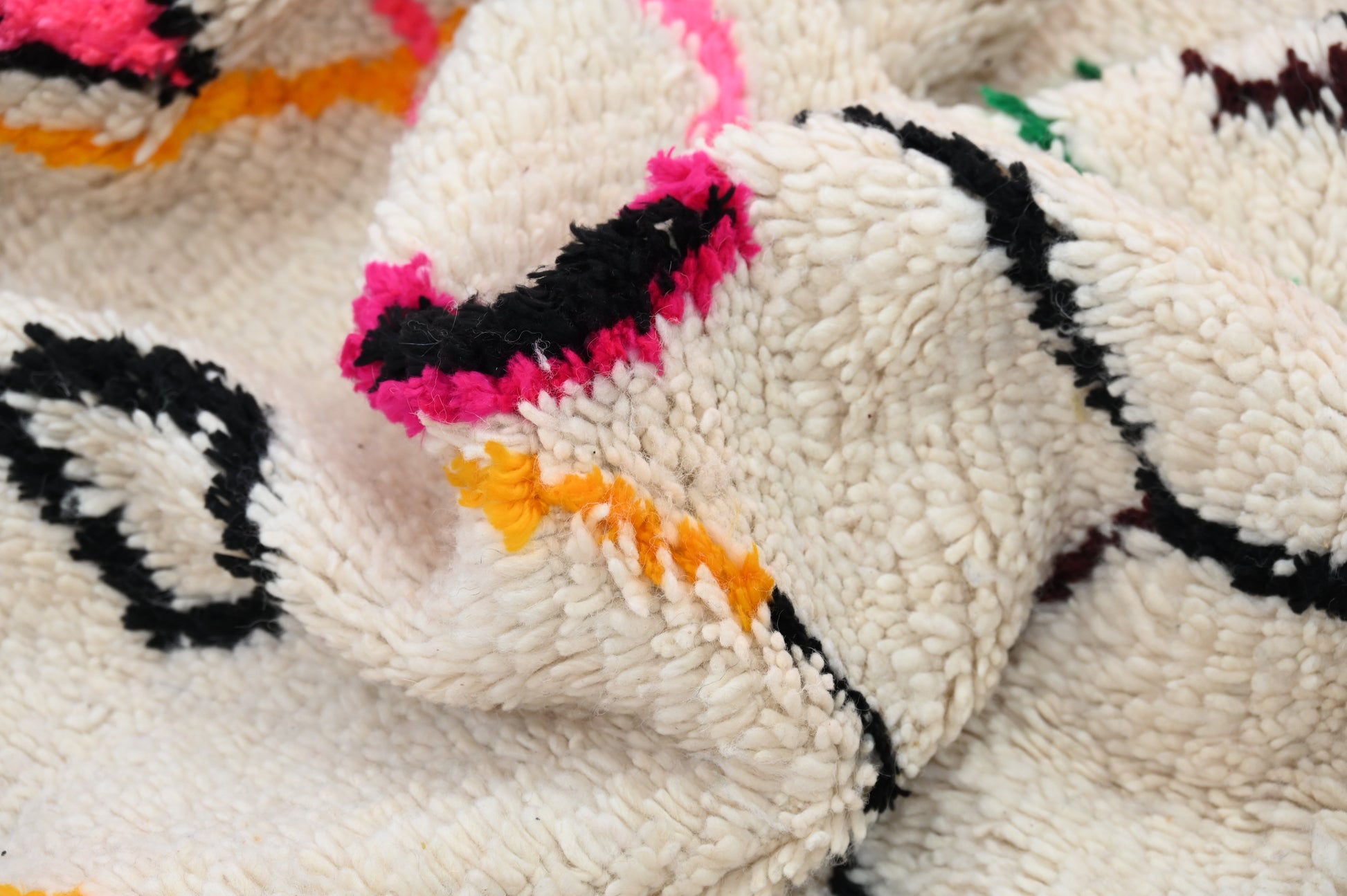 Découvrez notre splendide tapis coloré, une véritable œuvre d'art artisanale. Chaque tapis est confectionné avec passion à la main dans notre propre coopérative Baldi Chic, située au cœur des majestueuses montagnes de l'Atlas au Maroc. Fabriqué à partir de laine 100 % naturelle de brebis locales, ce tapis incarne la beauté de la nature. Les couleurs, toutes naturelles, reflètent la richesse du patrimoine culturel marocain. Chaque fil est tissé avec soin pour créer une palette de couleurs vibrantes qui illumineront votre intérieur. Notre tapis coloré est bien plus qu'un simple objet de décoration, c'est une expression de l'artisanat traditionnel marocain et de la créativité de nos artisans. Offrez-vous une pièce unique, riche en couleurs et en authenticité, avec notre tapis fait main.