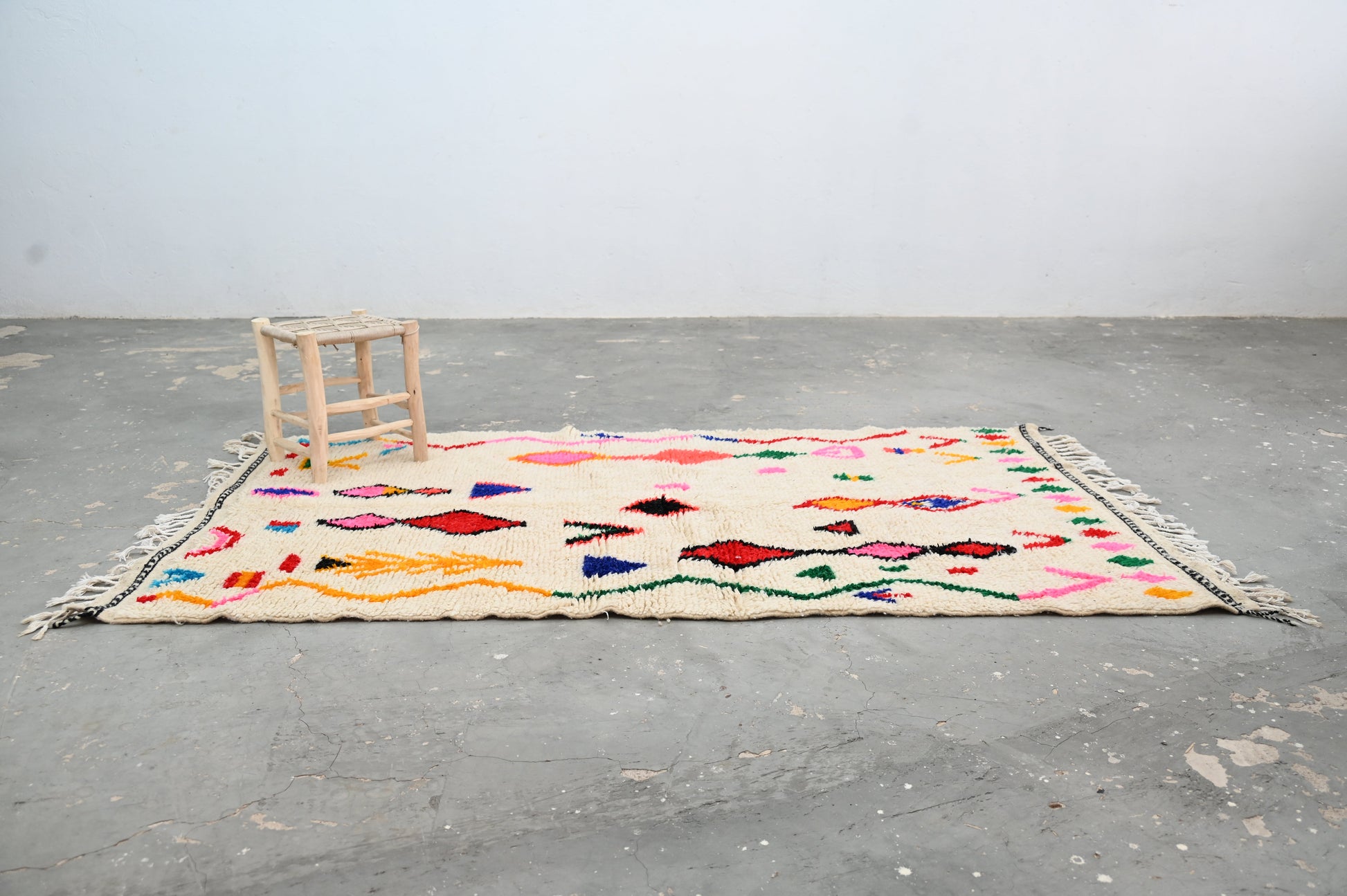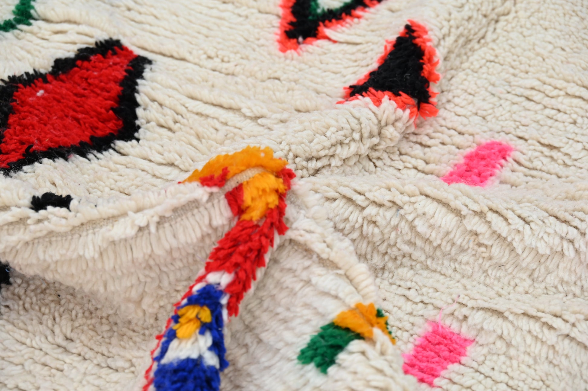 Découvrez notre splendide tapis coloré, une véritable œuvre d'art artisanale. Chaque tapis est confectionné avec passion à la main dans notre propre coopérative Baldi Chic, située au cœur des majestueuses montagnes de l'Atlas au Maroc. Fabriqué à partir de laine 100 % naturelle de brebis locales, ce tapis incarne la beauté de la nature. Les couleurs, toutes naturelles, reflètent la richesse du patrimoine culturel marocain. Chaque fil est tissé avec soin pour créer une palette de couleurs vibrantes qui illumineront votre intérieur. Notre tapis coloré est bien plus qu'un simple objet de décoration, c'est une expression de l'artisanat traditionnel marocain et de la créativité de nos artisans. Offrez-vous une pièce unique, riche en couleurs et en authenticité, avec notre tapis fait main.