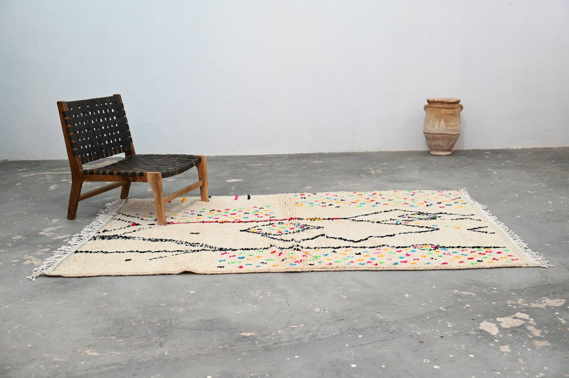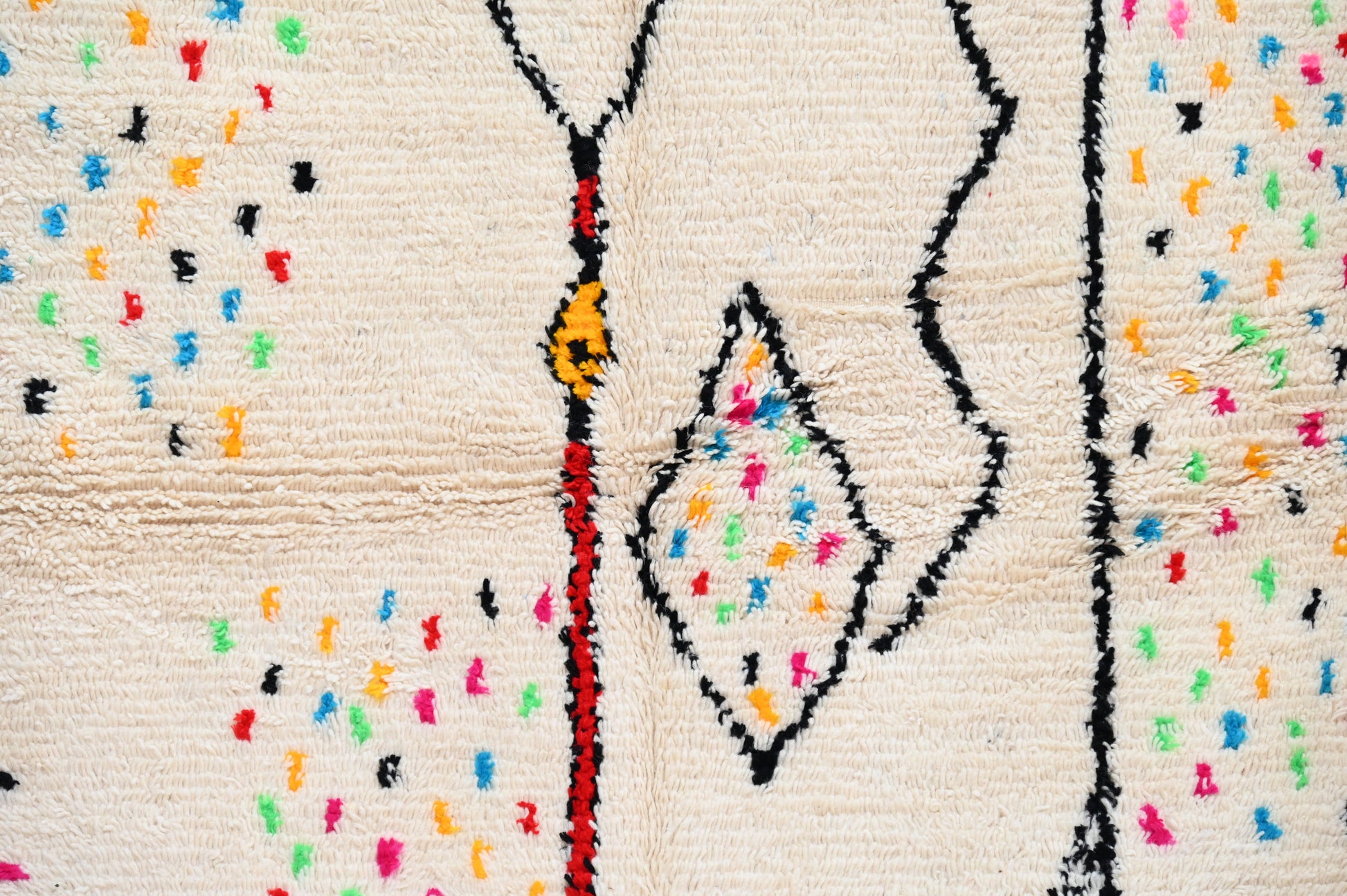 Découvrez notre splendide tapis coloré, une véritable œuvre d'art artisanale. Chaque tapis est confectionné avec passion à la main dans notre propre coopérative Baldi Chic, située au cœur des majestueuses montagnes de l'Atlas au Maroc. Fabriqué à partir de laine 100 % naturelle de brebis locales, ce tapis incarne la beauté de la nature. Les couleurs, toutes naturelles, reflètent la richesse du patrimoine culturel marocain. Chaque fil est tissé avec soin pour créer une palette de couleurs vibrantes qui illumineront votre intérieur. Notre tapis coloré est bien plus qu'un simple objet de décoration, c'est une expression de l'artisanat traditionnel marocain et de la créativité de nos artisans. Offrez-vous une pièce unique, riche en couleurs et en authenticité, avec notre tapis fait main.