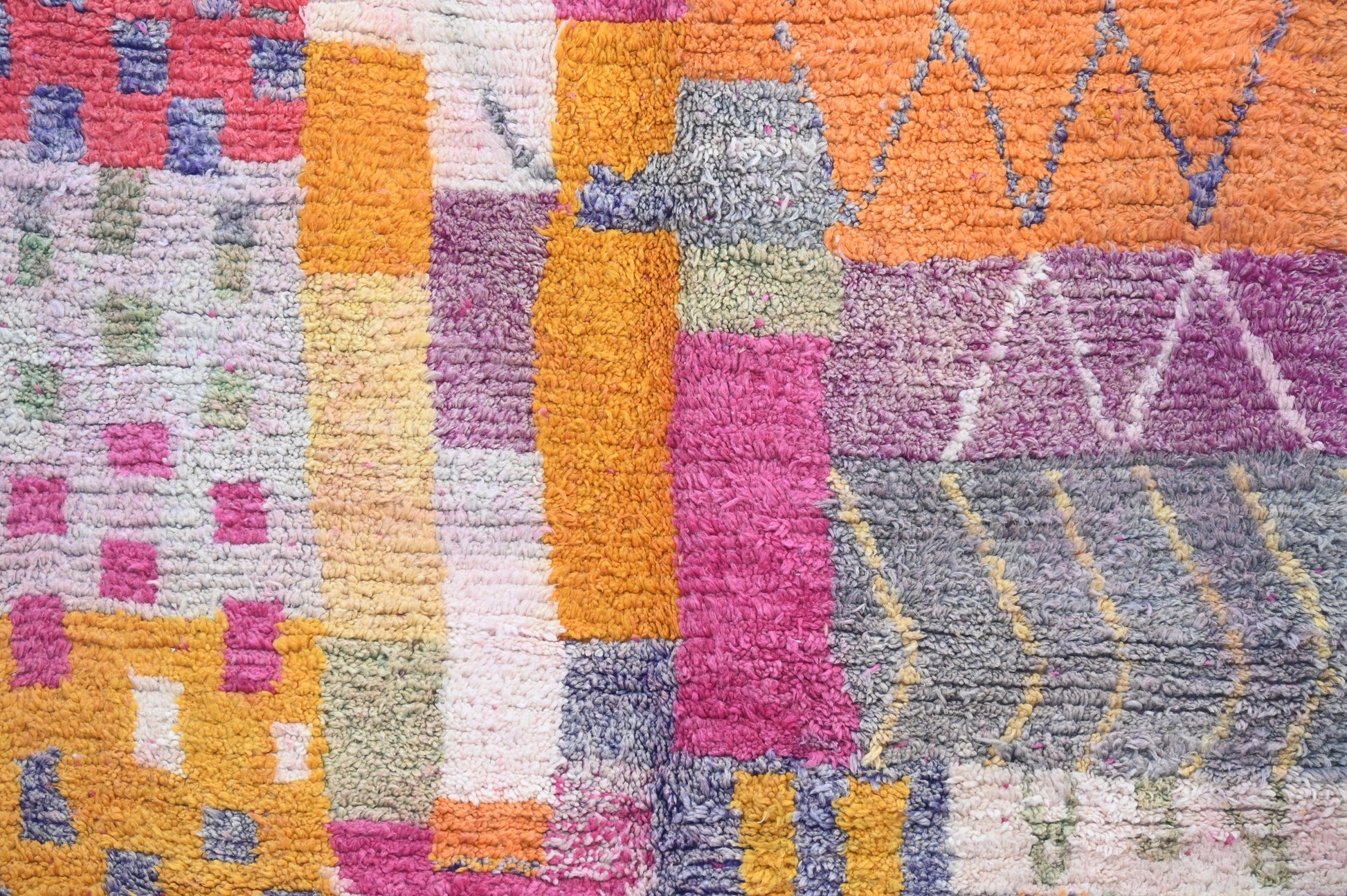 Découvrez notre splendide tapis coloré, une véritable œuvre d'art artisanale. Chaque tapis est confectionné avec passion à la main dans notre propre coopérative Baldi Chic, située au cœur des majestueuses montagnes de l'Atlas au Maroc. Fabriqué à partir de laine 100 % naturelle de brebis locales, ce tapis incarne la beauté de la nature. Les couleurs, toutes naturelles, reflètent la richesse du patrimoine culturel marocain. Chaque fil est tissé avec soin pour créer une palette de couleurs vibrantes qui illumineront votre intérieur. Notre tapis coloré est bien plus qu'un simple objet de décoration, c'est une expression de l'artisanat traditionnel marocain et de la créativité de nos artisans. Offrez-vous une pièce unique, riche en couleurs et en authenticité, avec notre tapis fait main.