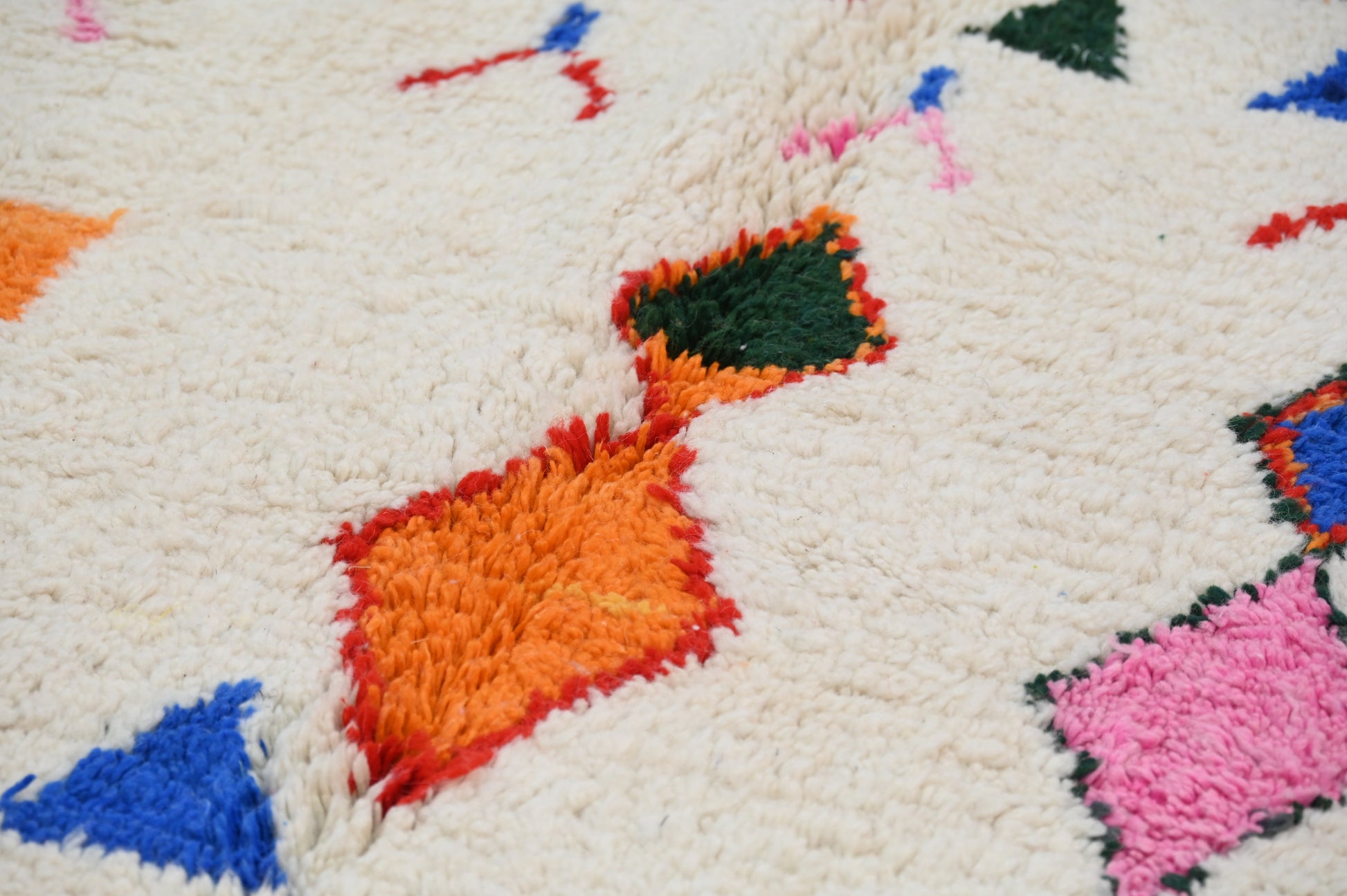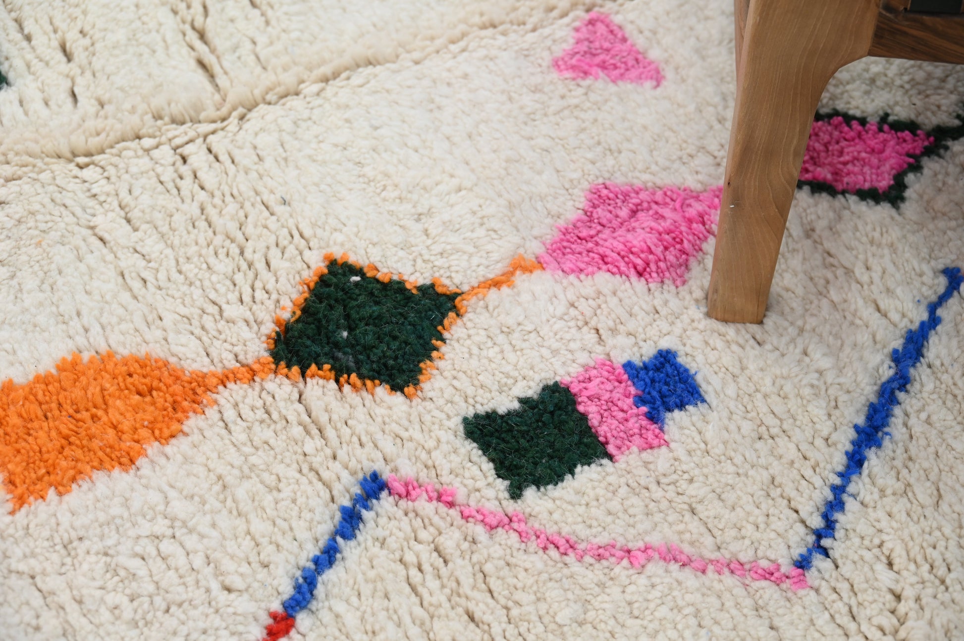 Découvrez notre splendide tapis coloré, une véritable œuvre d'art artisanale. Chaque tapis est confectionné avec passion à la main dans notre propre coopérative Baldi Chic, située au cœur des majestueuses montagnes de l'Atlas au Maroc. Fabriqué à partir de laine 100 % naturelle de brebis locales, ce tapis incarne la beauté de la nature. Les couleurs, toutes naturelles, reflètent la richesse du patrimoine culturel marocain. Chaque fil est tissé avec soin pour créer une palette de couleurs vibrantes qui illumineront votre intérieur. Notre tapis coloré est bien plus qu'un simple objet de décoration, c'est une expression de l'artisanat traditionnel marocain et de la créativité de nos artisans. Offrez-vous une pièce unique, riche en couleurs et en authenticité, avec notre tapis fait main.