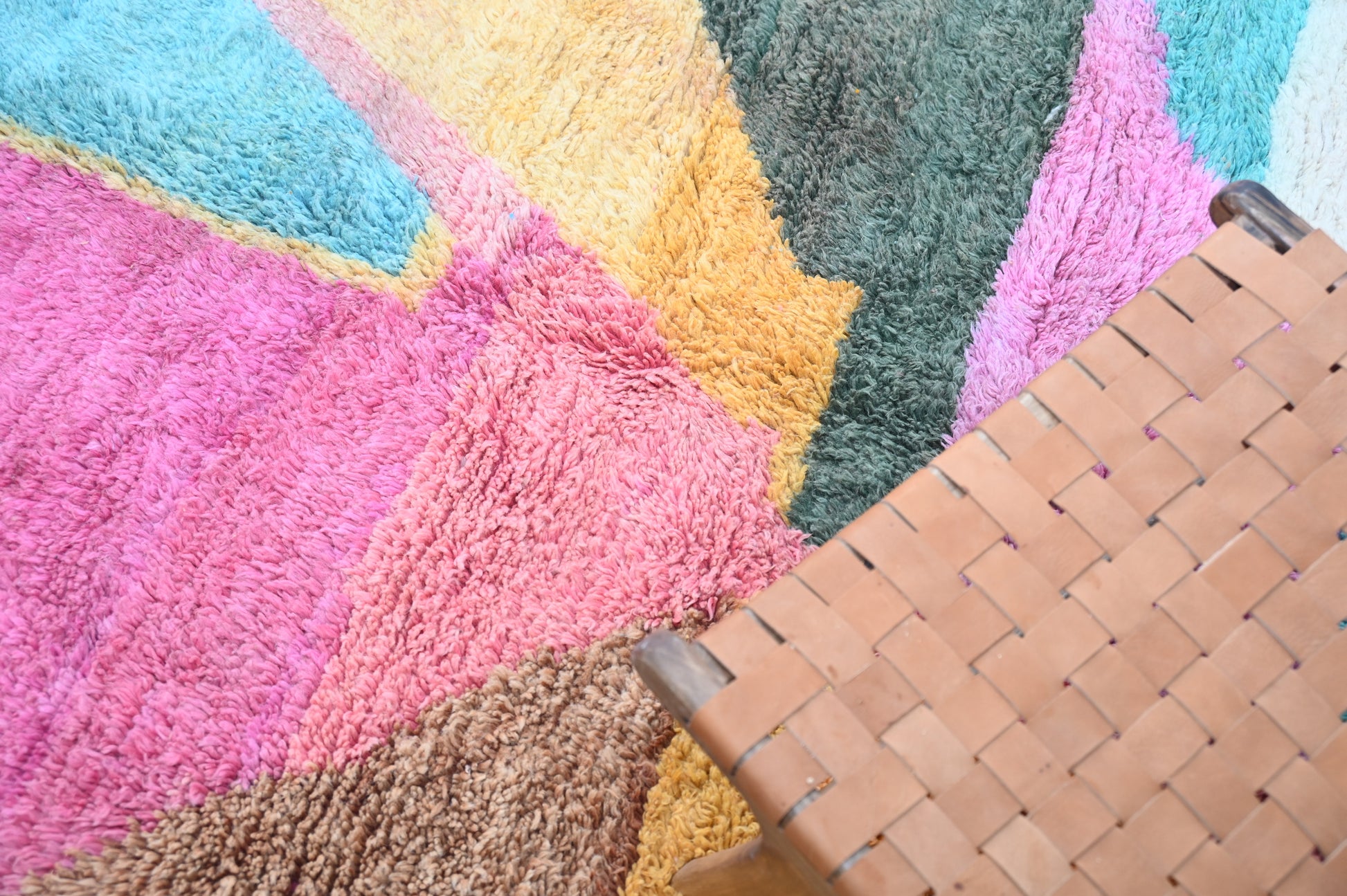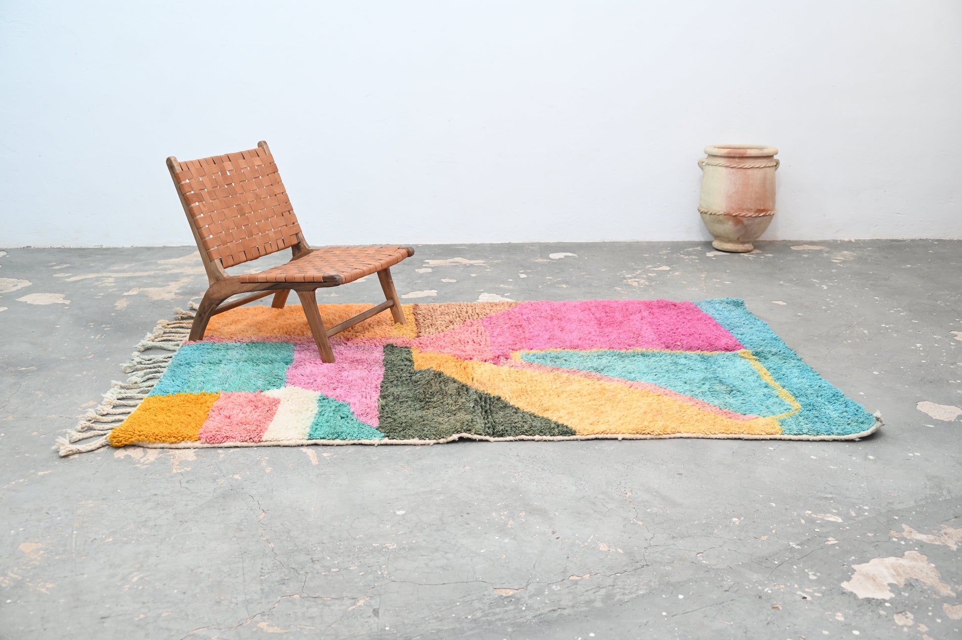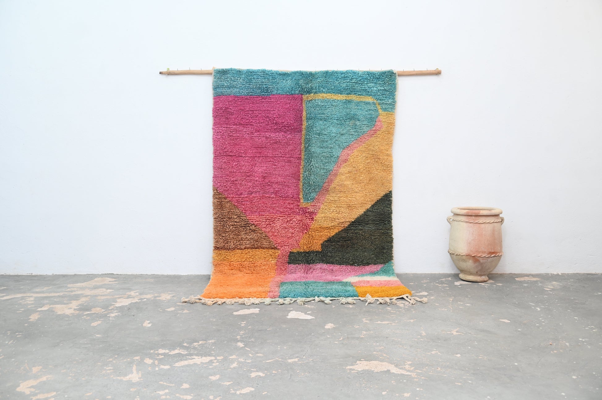 Découvrez notre splendide tapis coloré, une véritable œuvre d'art artisanale. Chaque tapis est confectionné avec passion à la main dans notre propre coopérative Baldi Chic, située au cœur des majestueuses montagnes de l'Atlas au Maroc. Fabriqué à partir de laine 100 % naturelle de brebis locales, ce tapis incarne la beauté de la nature. Les couleurs, toutes naturelles, reflètent la richesse du patrimoine culturel marocain. Chaque fil est tissé avec soin pour créer une palette de couleurs vibrantes qui illumineront votre intérieur. Notre tapis coloré est bien plus qu'un simple objet de décoration, c'est une expression de l'artisanat traditionnel marocain et de la créativité de nos artisans. Offrez-vous une pièce unique, riche en couleurs et en authenticité, avec notre tapis fait main.