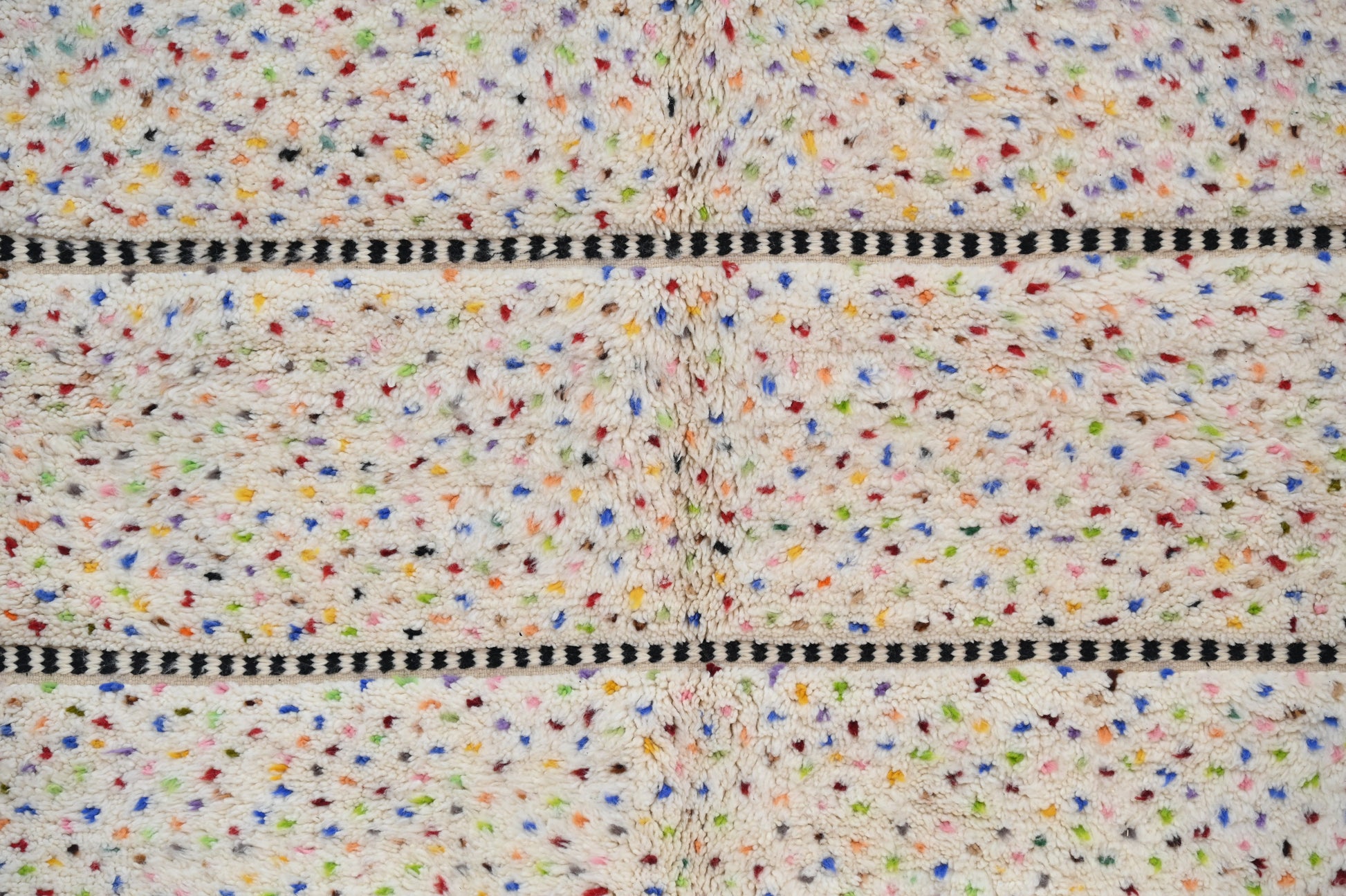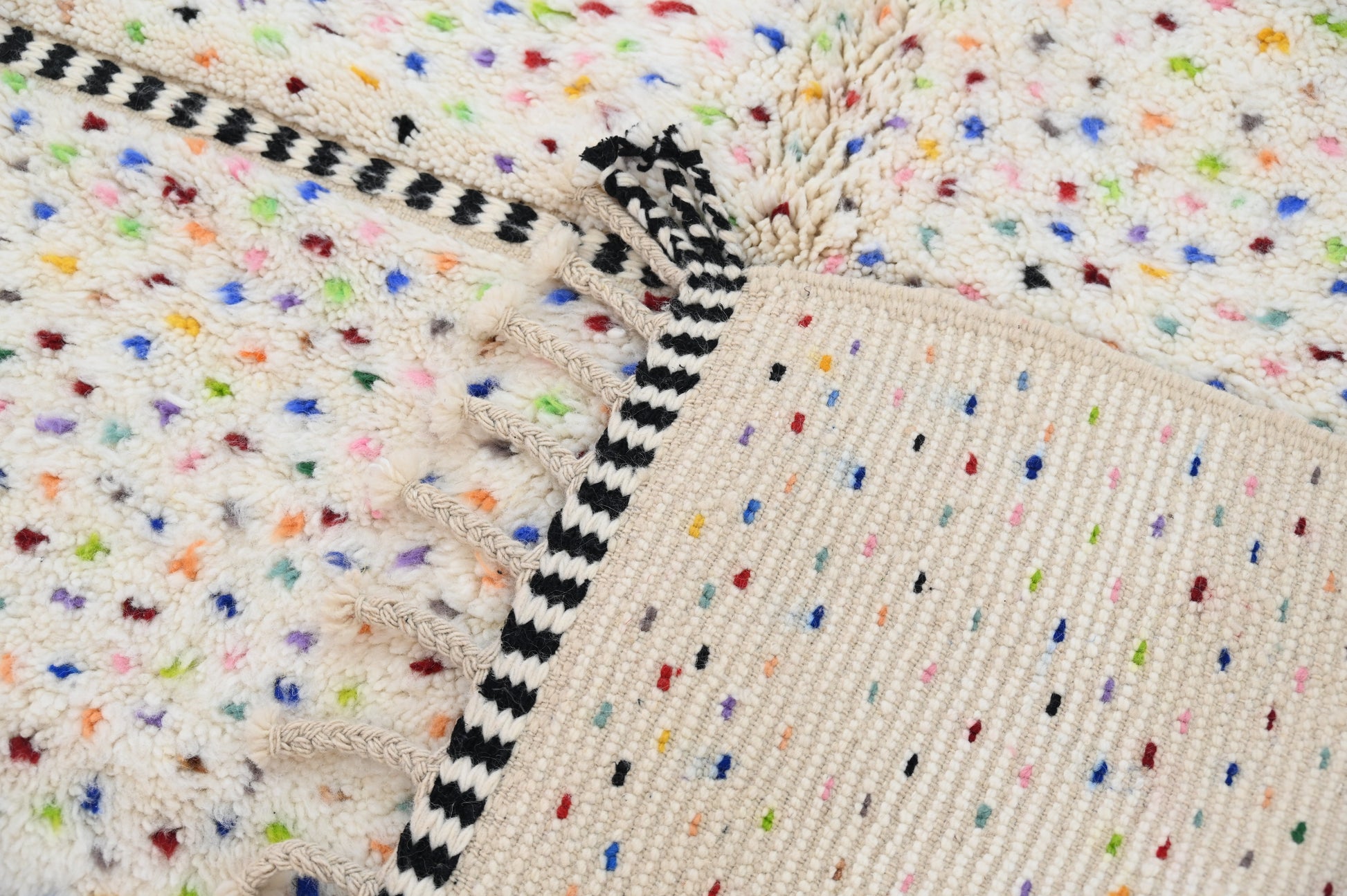 Découvrez notre splendide tapis coloré, une véritable œuvre d'art artisanale. Chaque tapis est confectionné avec passion à la main dans notre propre coopérative Baldi Chic, située au cœur des majestueuses montagnes de l'Atlas au Maroc. Fabriqué à partir de laine 100 % naturelle de brebis locales, ce tapis incarne la beauté de la nature. Les couleurs, toutes naturelles, reflètent la richesse du patrimoine culturel marocain. Chaque fil est tissé avec soin pour créer une palette de couleurs vibrantes qui illumineront votre intérieur. Notre tapis coloré est bien plus qu'un simple objet de décoration, c'est une expression de l'artisanat traditionnel marocain et de la créativité de nos artisans. Offrez-vous une pièce unique, riche en couleurs et en authenticité, avec notre tapis fait main.