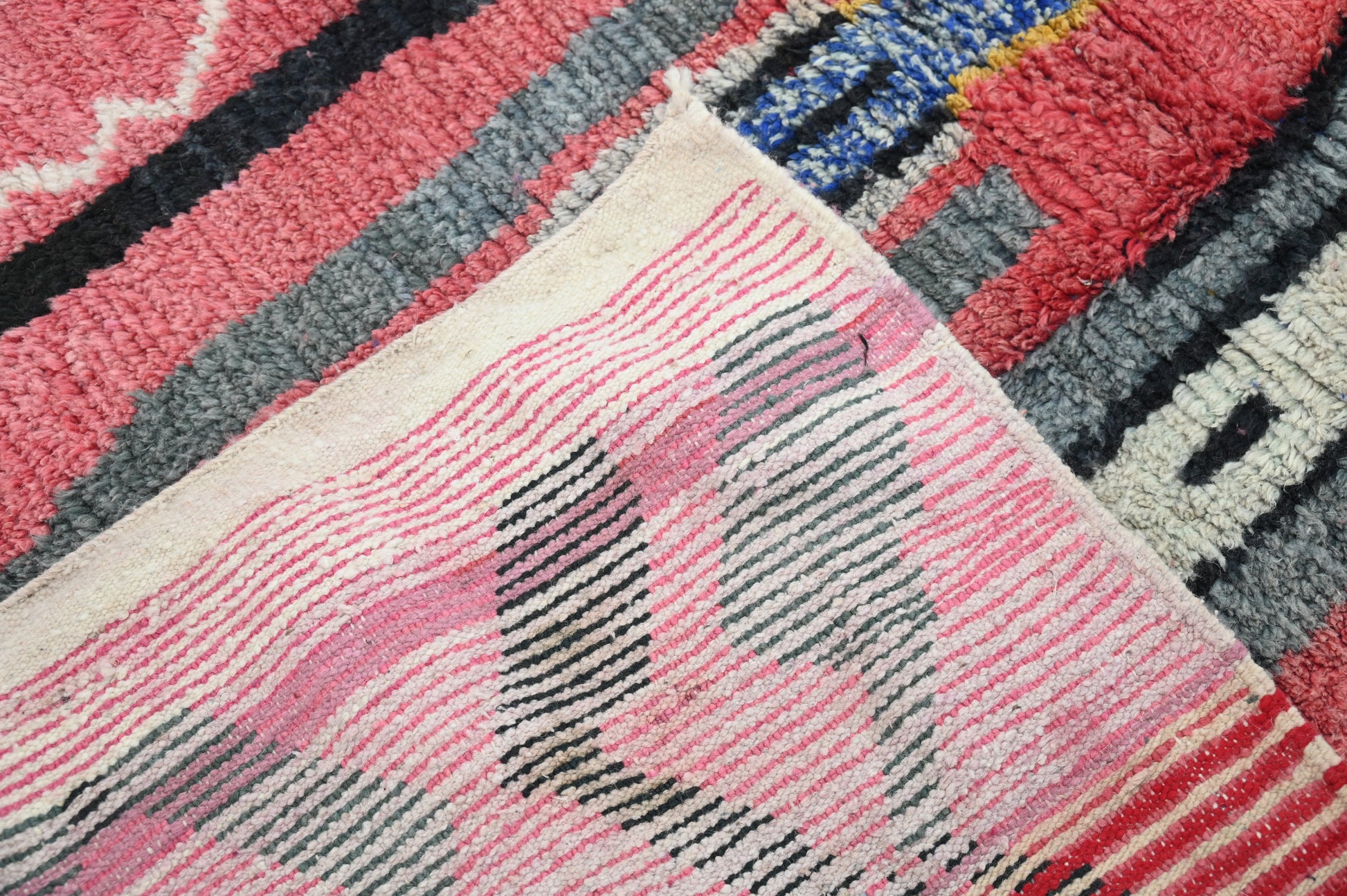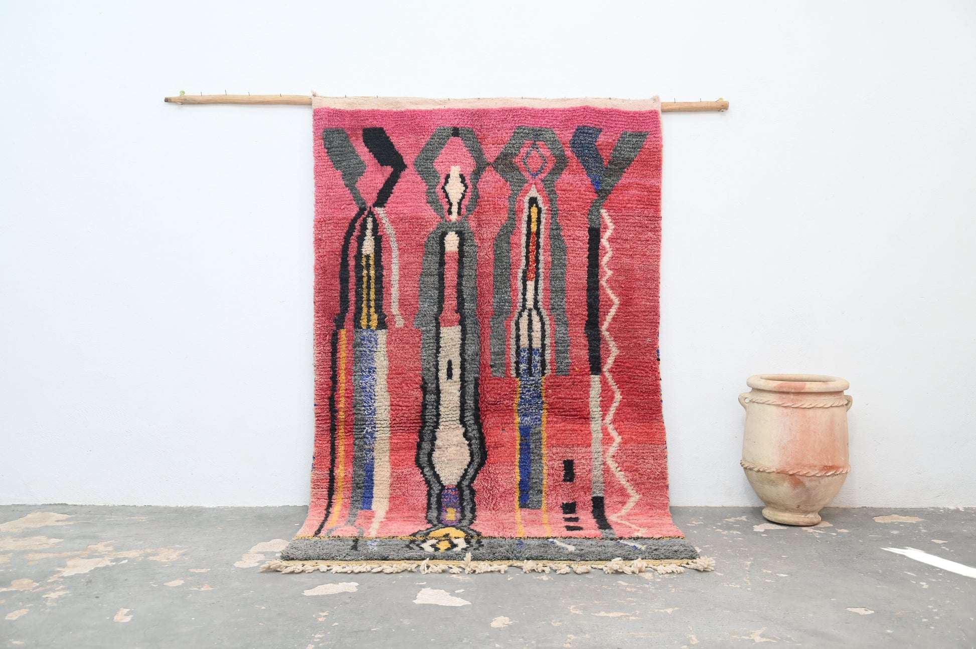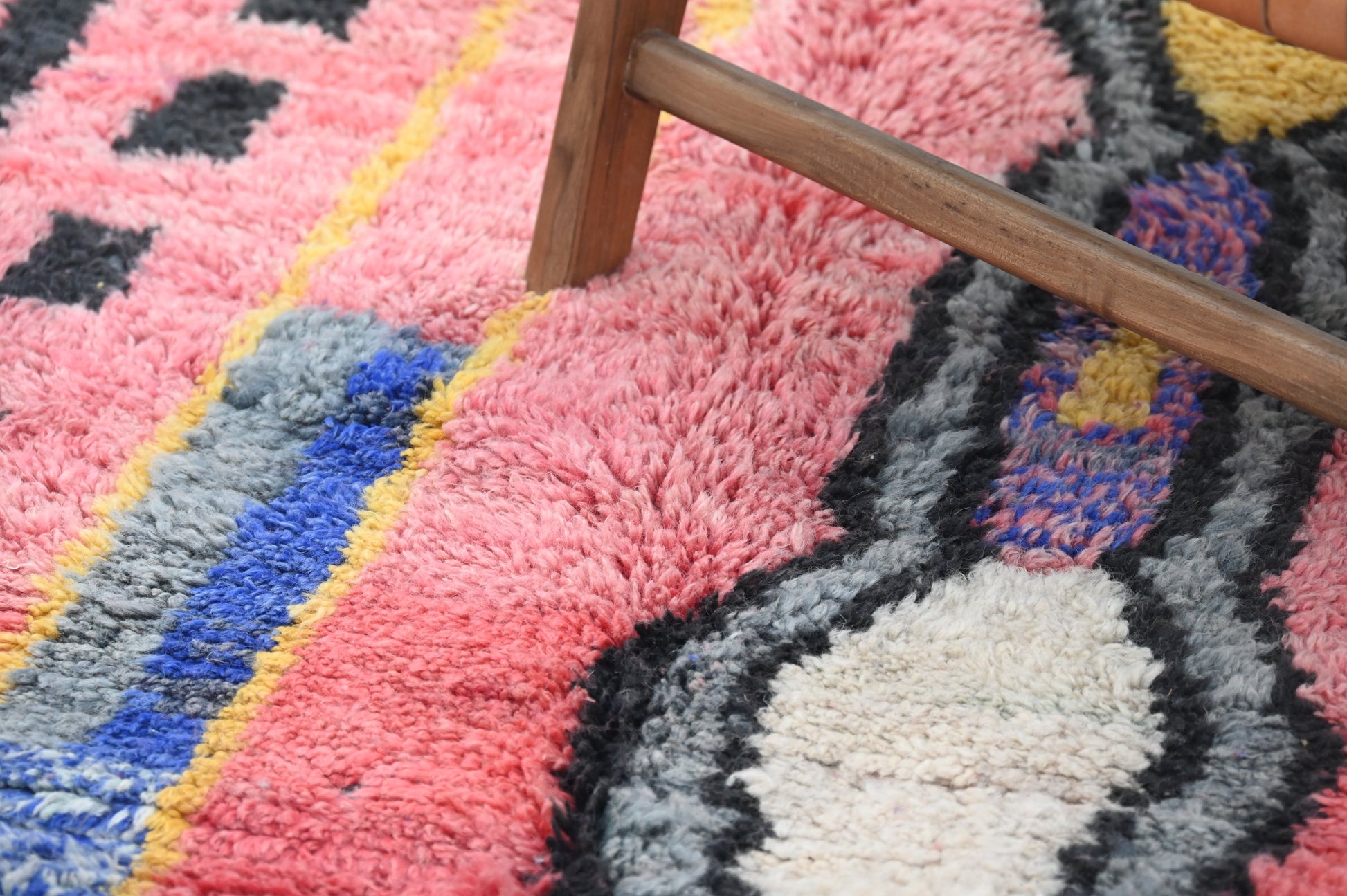 Découvrez notre splendide tapis coloré, une véritable œuvre d'art artisanale. Chaque tapis est confectionné avec passion à la main dans notre propre coopérative Baldi Chic, située au cœur des majestueuses montagnes de l'Atlas au Maroc. Fabriqué à partir de laine 100 % naturelle de brebis locales, ce tapis incarne la beauté de la nature. Les couleurs, toutes naturelles, reflètent la richesse du patrimoine culturel marocain. Chaque fil est tissé avec soin pour créer une palette de couleurs vibrantes qui illumineront votre intérieur. Notre tapis coloré est bien plus qu'un simple objet de décoration, c'est une expression de l'artisanat traditionnel marocain et de la créativité de nos artisans. Offrez-vous une pièce unique, riche en couleurs et en authenticité, avec notre tapis fait main.