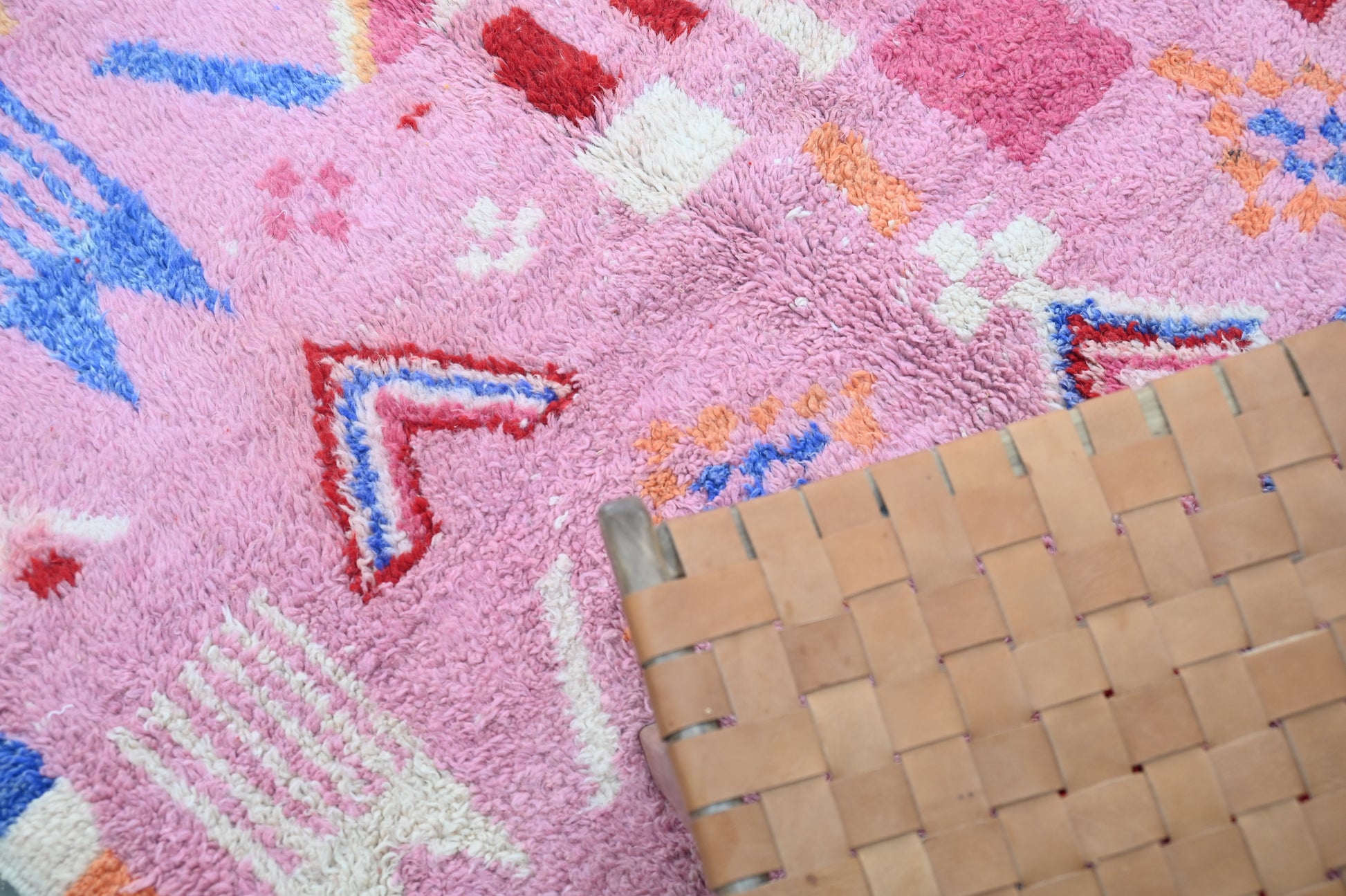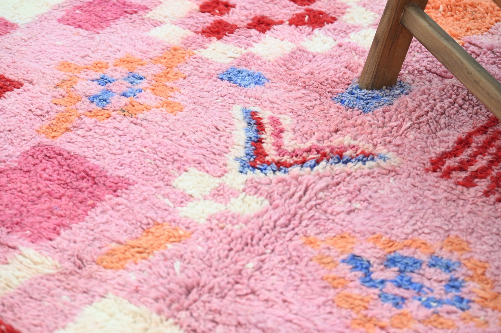 Découvrez notre splendide tapis coloré, une véritable œuvre d'art artisanale. Chaque tapis est confectionné avec passion à la main dans notre propre coopérative Baldi Chic, située au cœur des majestueuses montagnes de l'Atlas au Maroc. Fabriqué à partir de laine 100 % naturelle de brebis locales, ce tapis incarne la beauté de la nature. Les couleurs, toutes naturelles, reflètent la richesse du patrimoine culturel marocain. Chaque fil est tissé avec soin pour créer une palette de couleurs vibrantes qui illumineront votre intérieur. Notre tapis coloré est bien plus qu'un simple objet de décoration, c'est une expression de l'artisanat traditionnel marocain et de la créativité de nos artisans. Offrez-vous une pièce unique, riche en couleurs et en authenticité, avec notre tapis fait main.