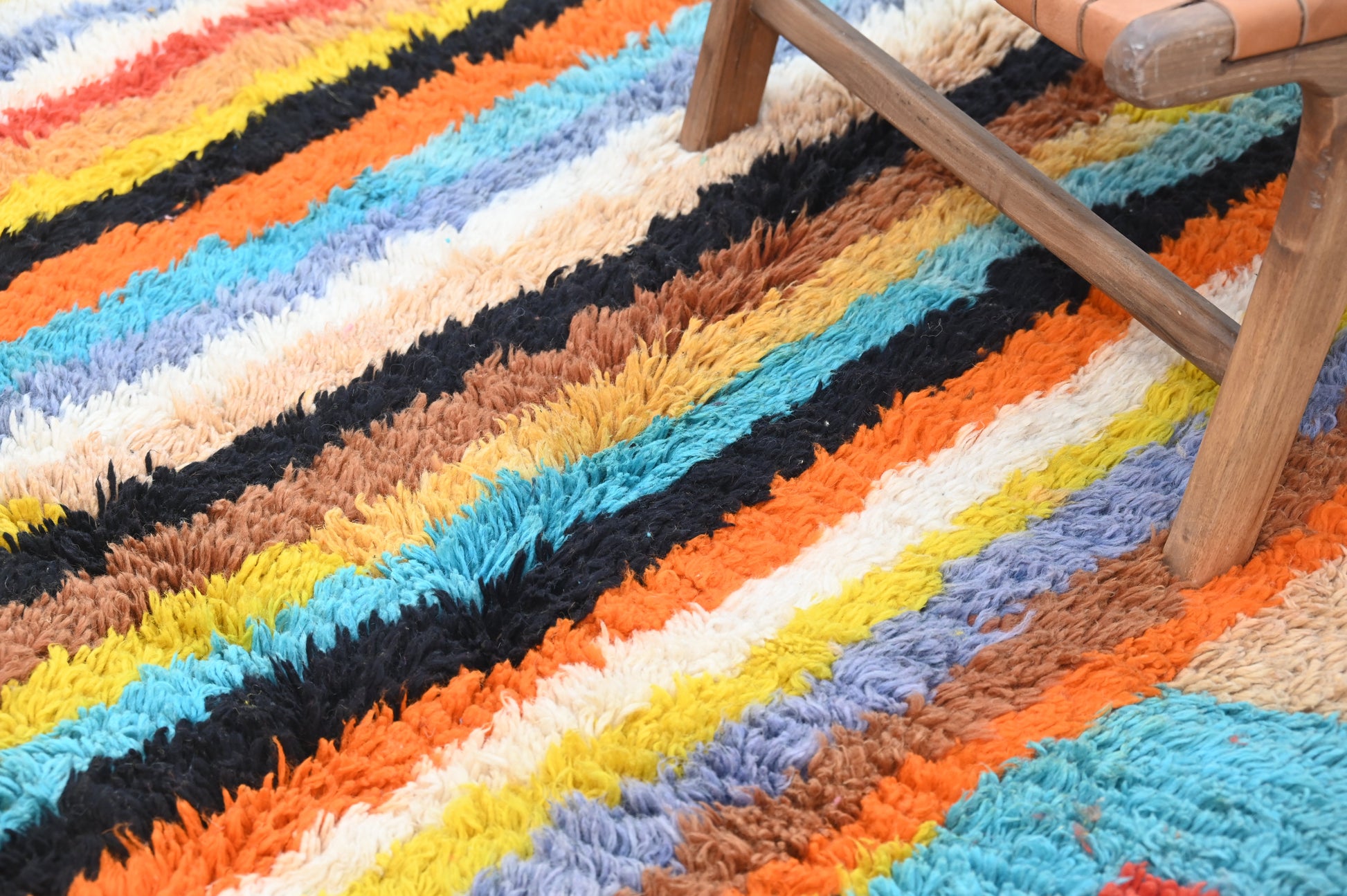 Découvrez notre splendide tapis coloré, une véritable œuvre d'art artisanale. Chaque tapis est confectionné avec passion à la main dans notre propre coopérative Baldi Chic, située au cœur des majestueuses montagnes de l'Atlas au Maroc. Fabriqué à partir de laine 100 % naturelle de brebis locales, ce tapis incarne la beauté de la nature. Les couleurs, toutes naturelles, reflètent la richesse du patrimoine culturel marocain. Chaque fil est tissé avec soin pour créer une palette de couleurs vibrantes qui illumineront votre intérieur. Notre tapis coloré est bien plus qu'un simple objet de décoration, c'est une expression de l'artisanat traditionnel marocain et de la créativité de nos artisans. Offrez-vous une pièce unique, riche en couleurs et en authenticité, avec notre tapis fait main.