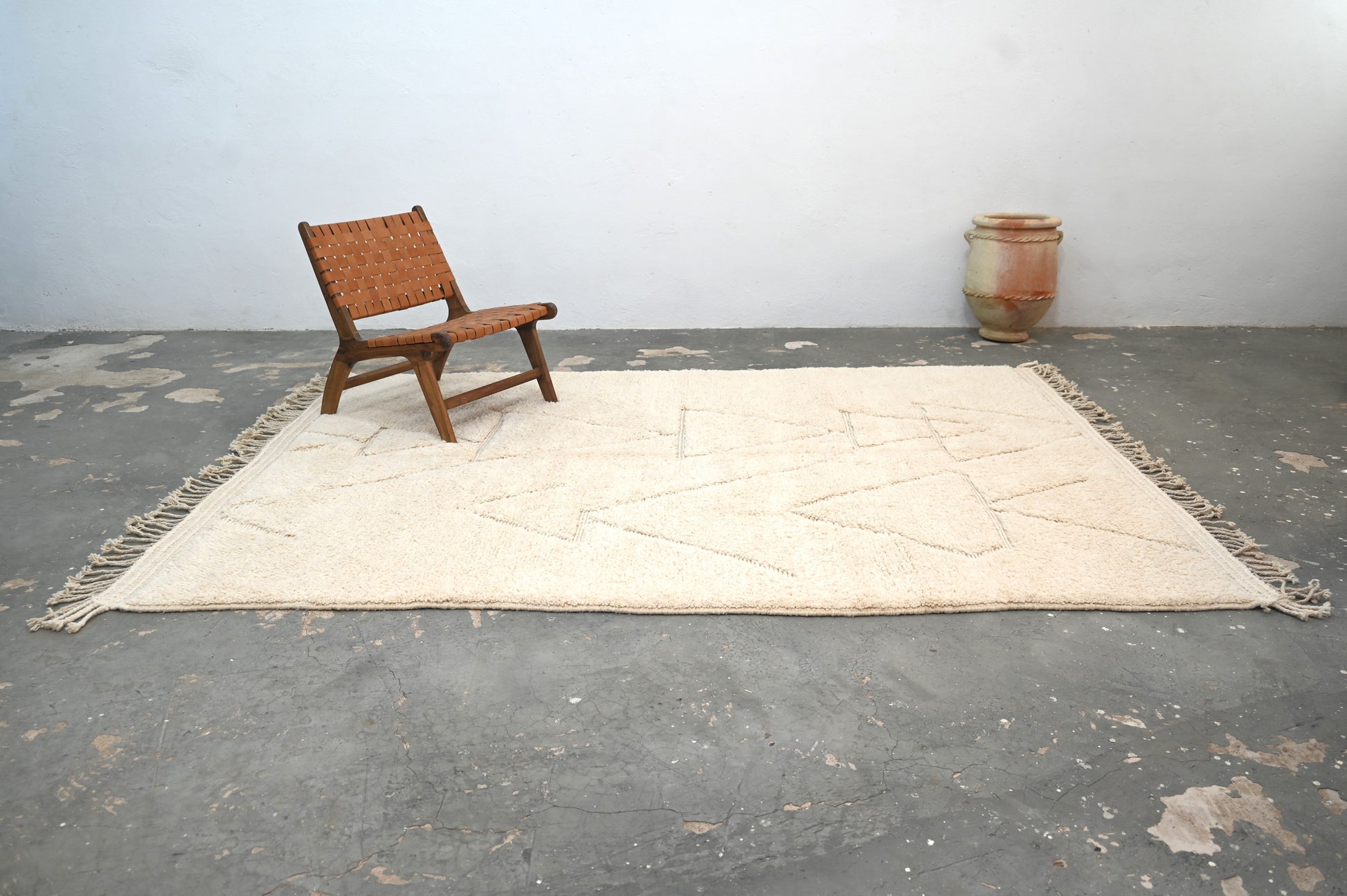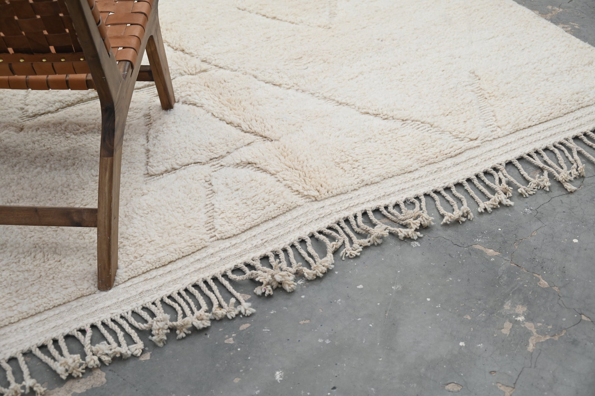 Découvrez nos magnifiques tapis Beni Ouarain, de véritables trésors artisanaux. Chaque tapis est soigneusement tissé à la main sur un métier à tisser, en suivant la technique ancestrale de nos ancêtres amazighs, dans notre propre coopérative BaldiChic, nichée au cœur des majestueuses montagnes de l'Atlas au Maroc. Fabriquées à partir de laine naturelle de brebis locales de l'Atlas, ces pièces uniques combinent la tradition et le luxe. Leur douceur et leur qualité luxueuse vous envelopperont de confort et d'élégance. Chaque tapis Beni Ouarain raconte une histoire, reflète le savoir-faire ancestral de nos artisans et apportera une touche d'authenticité marocaine à votre intérieur. Offrez-vous le raffinement et la chaleur du Maroc avec nos tapis Beni Ouarain. Chaque tapis incarne le charme de la tradition et l'opulence du naturel.