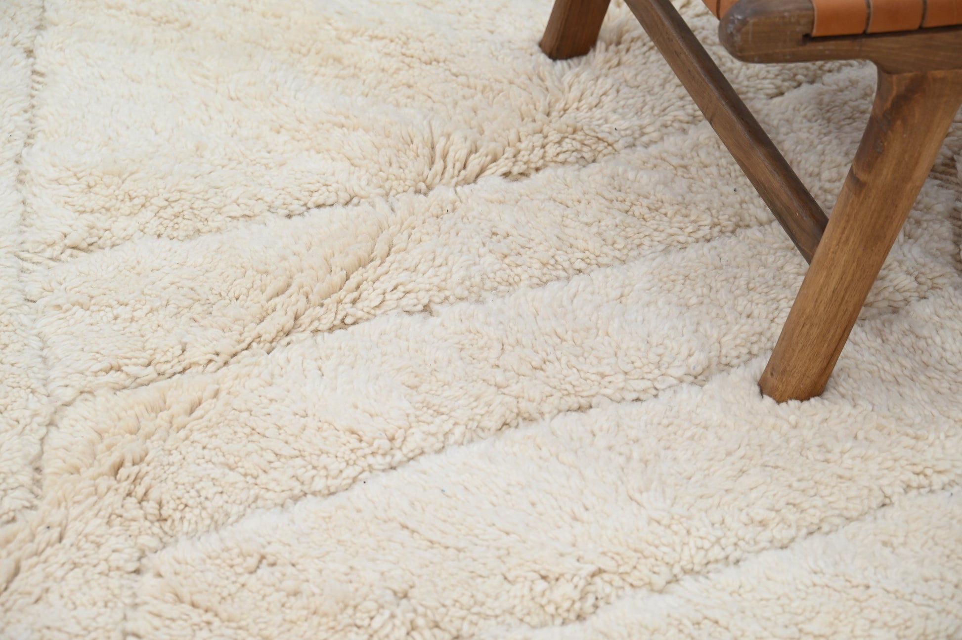 Découvrez nos magnifiques tapis Beni Ouarain, de véritables trésors artisanaux. Chaque tapis est soigneusement tissé à la main sur un métier à tisser, en suivant la technique ancestrale de nos ancêtres amazighs, dans notre propre coopérative BaldiChic, nichée au cœur des majestueuses montagnes de l'Atlas au Maroc. Fabriquées à partir de laine naturelle de brebis locales de l'Atlas, ces pièces uniques combinent la tradition et le luxe. Leur douceur et leur qualité luxueuse vous envelopperont de confort et d'élégance. Chaque tapis Beni Ouarain raconte une histoire, reflète le savoir-faire ancestral de nos artisans et apportera une touche d'authenticité marocaine à votre intérieur. Offrez-vous le raffinement et la chaleur du Maroc avec nos tapis Beni Ouarain. Chaque tapis incarne le charme de la tradition et l'opulence du naturel.