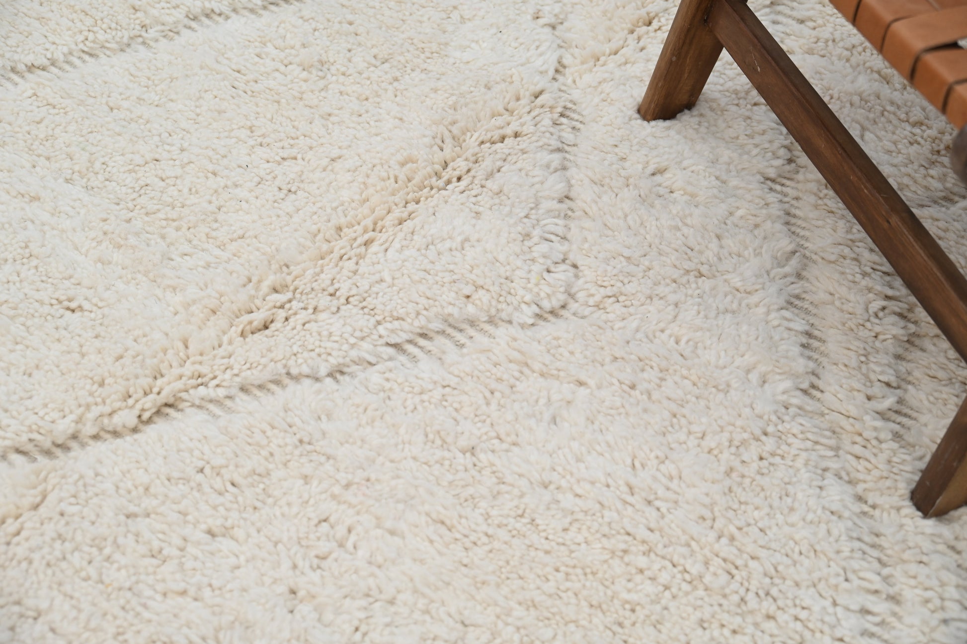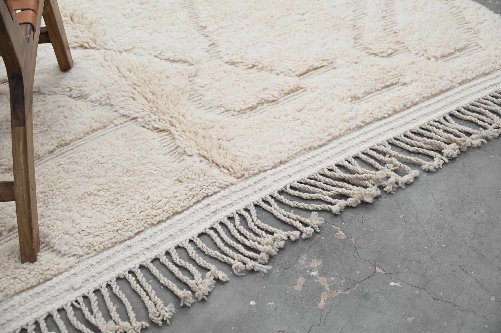 Découvrez nos magnifiques tapis Beni Ouarain, de véritables trésors artisanaux. Chaque tapis est soigneusement tissé à la main sur un métier à tisser, en suivant la technique ancestrale de nos ancêtres amazighs, dans notre propre coopérative BaldiChic, nichée au cœur des majestueuses montagnes de l'Atlas au Maroc. Fabriquées à partir de laine naturelle de brebis locales de l'Atlas, ces pièces uniques combinent la tradition et le luxe. Leur douceur et leur qualité luxueuse vous envelopperont de confort et d'élégance. Chaque tapis Beni Ouarain raconte une histoire, reflète le savoir-faire ancestral de nos artisans et apportera une touche d'authenticité marocaine à votre intérieur. Offrez-vous le raffinement et la chaleur du Maroc avec nos tapis Beni Ouarain. Chaque tapis incarne le charme de la tradition et l'opulence du naturel.
