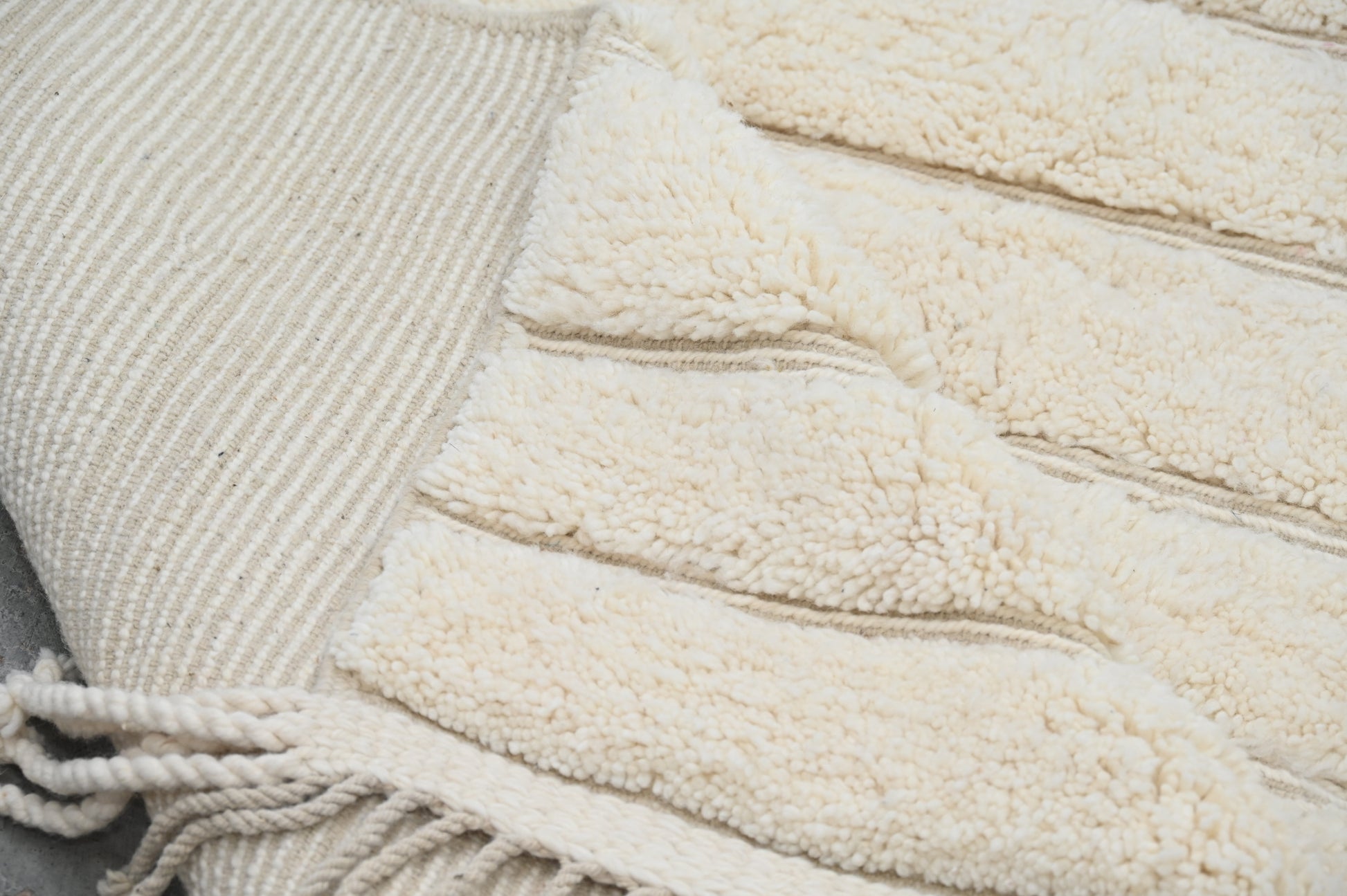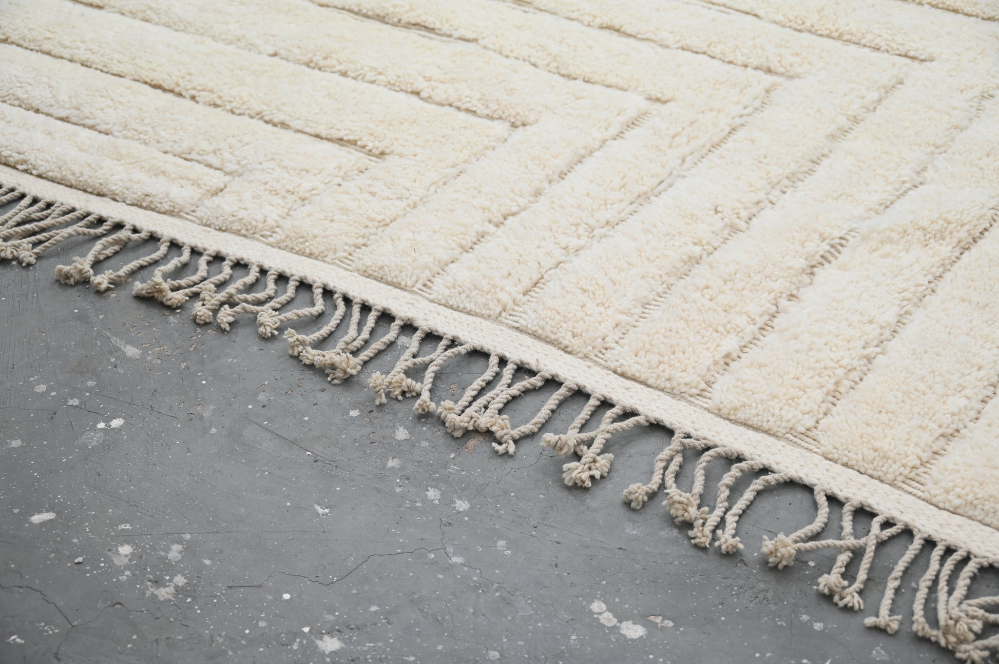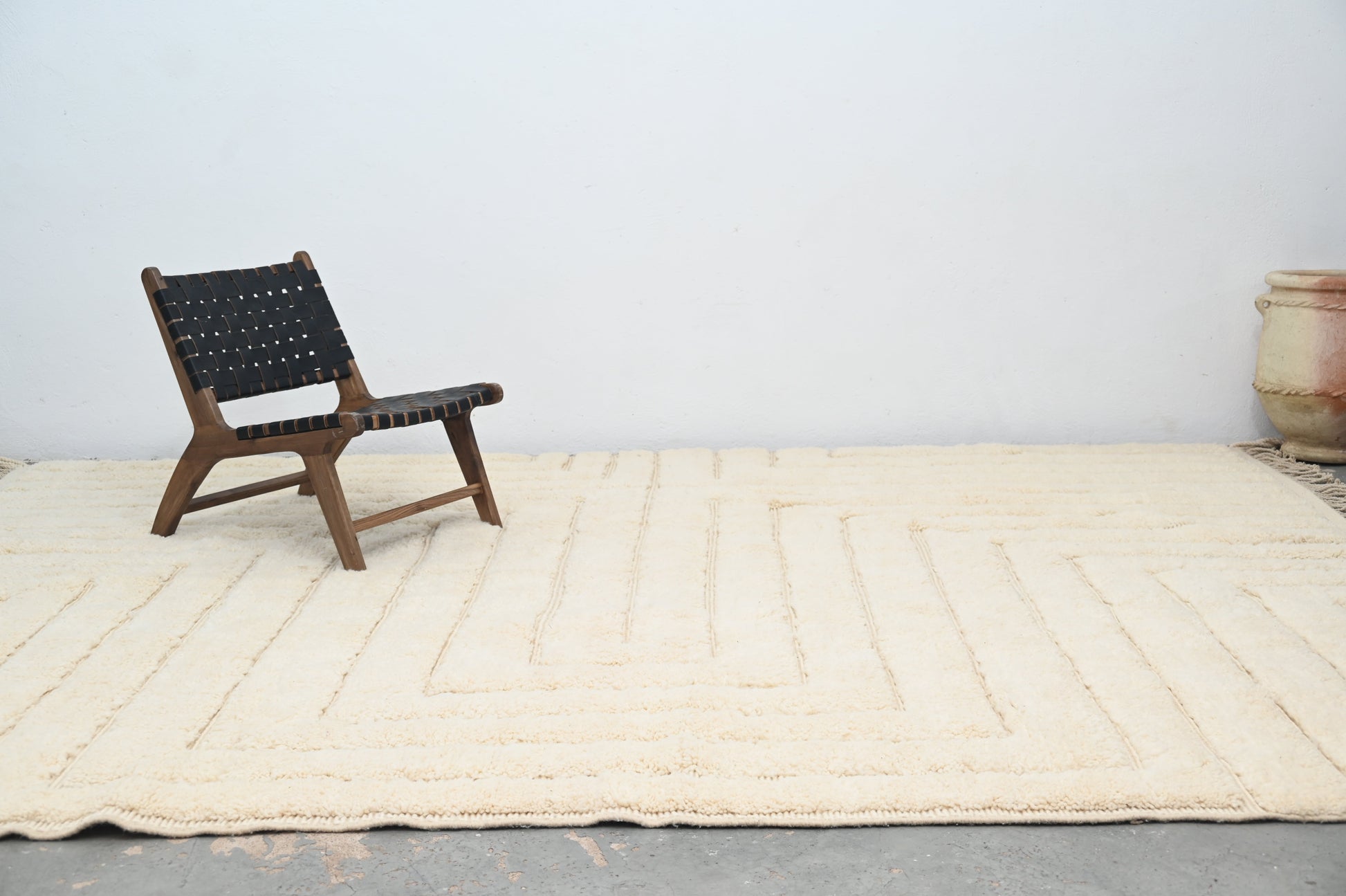 Découvrez nos magnifiques tapis Beni Ouarain, de véritables trésors artisanaux. Chaque tapis est soigneusement tissé à la main sur un métier à tisser, en suivant la technique ancestrale de nos ancêtres amazighs, dans notre propre coopérative BaldiChic, nichée au cœur des majestueuses montagnes de l'Atlas au Maroc. Fabriquées à partir de laine naturelle de brebis locales de l'Atlas, ces pièces uniques combinent la tradition et le luxe. Leur douceur et leur qualité luxueuse vous envelopperont de confort et d'élégance. Chaque tapis Beni Ouarain raconte une histoire, reflète le savoir-faire ancestral de nos artisans et apportera une touche d'authenticité marocaine à votre intérieur. Offrez-vous le raffinement et la chaleur du Maroc avec nos tapis Beni Ouarain. Chaque tapis incarne le charme de la tradition et l'opulence du naturel.