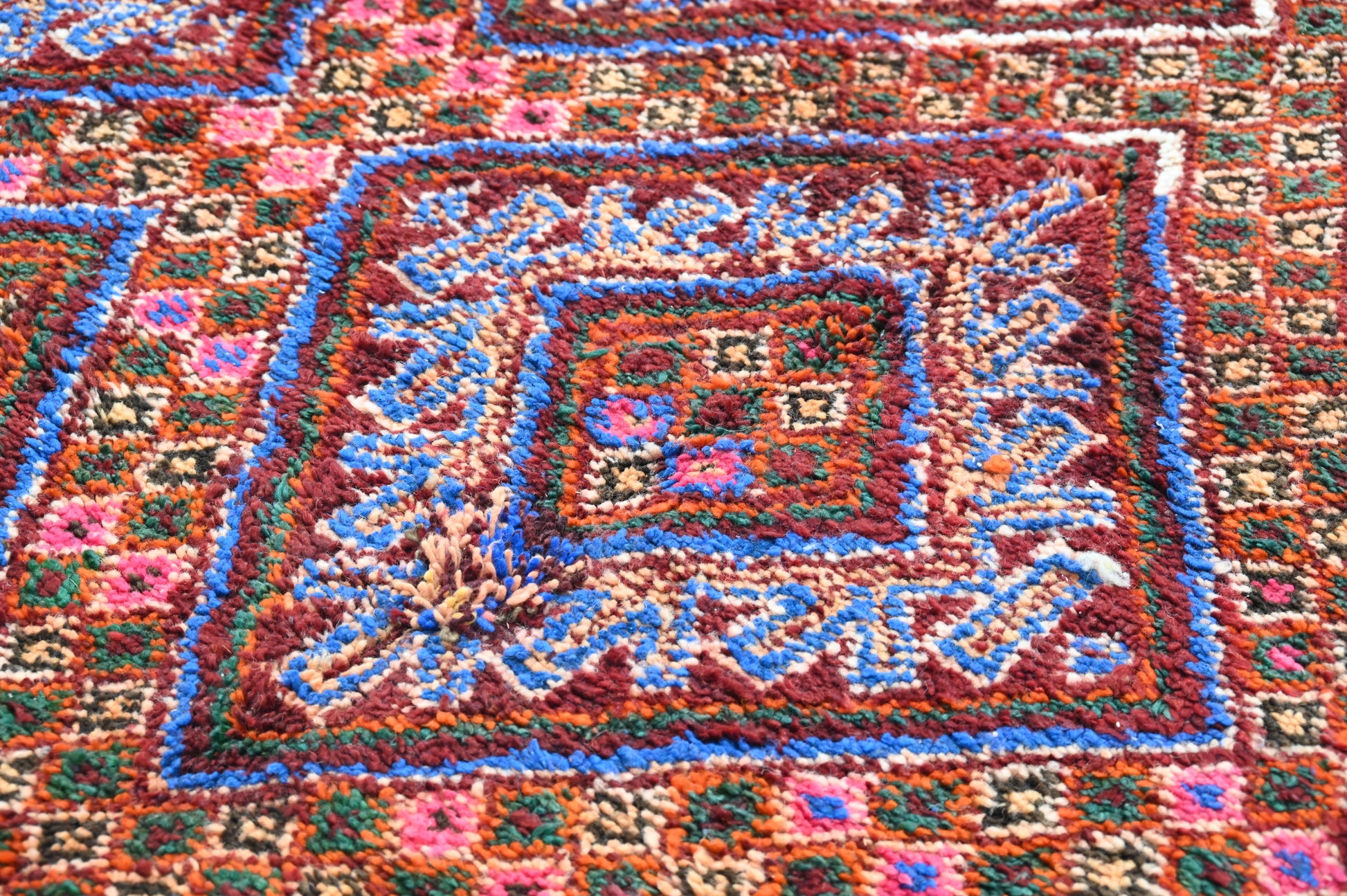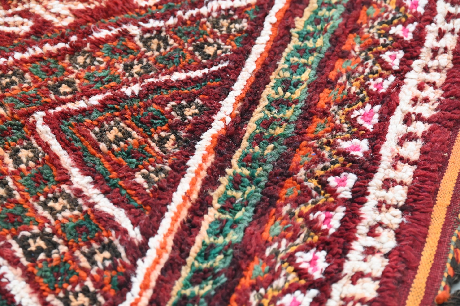 Réputés pour leur mélange harmonieux de couleurs chaudes et de motifs traditionnels, nos tapis Boujaad ou la tribu Beni M'Guild apportent un style rustique et sophistiqué, parfaitement en phase avec les tendances actuelles en matière de décoration. Chaque tapis est une œuvre d'art unique, témoin des histoires et traditions des tribus locales.